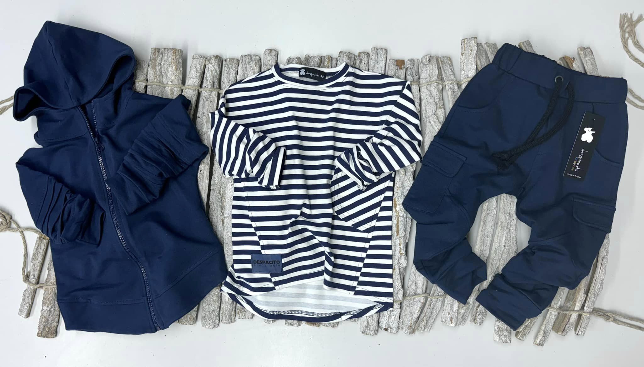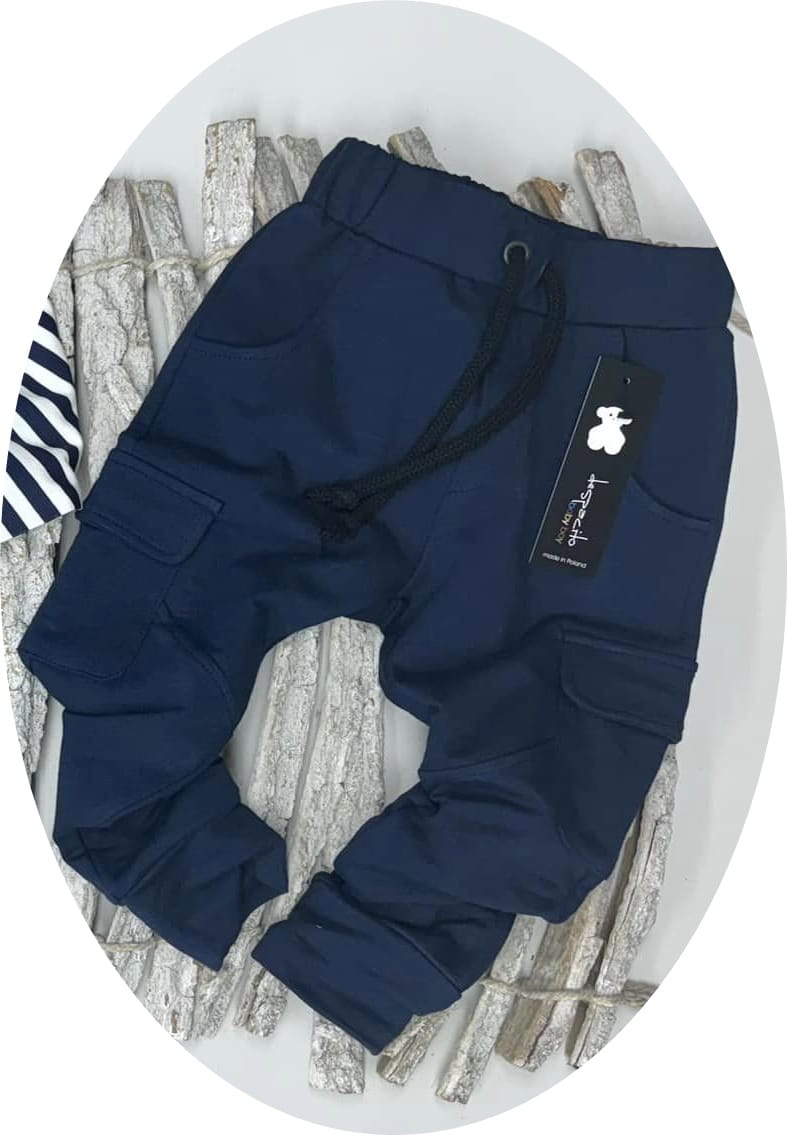 Spodnie chłopięce cargo z kieszeniami, granat - Despacito