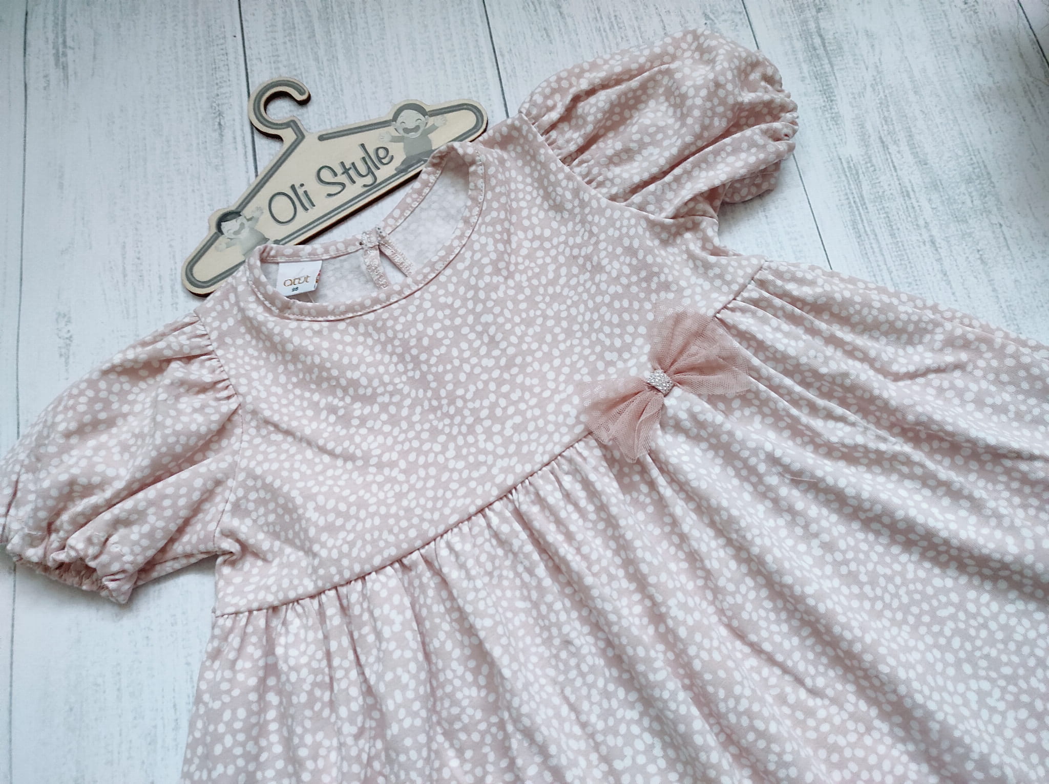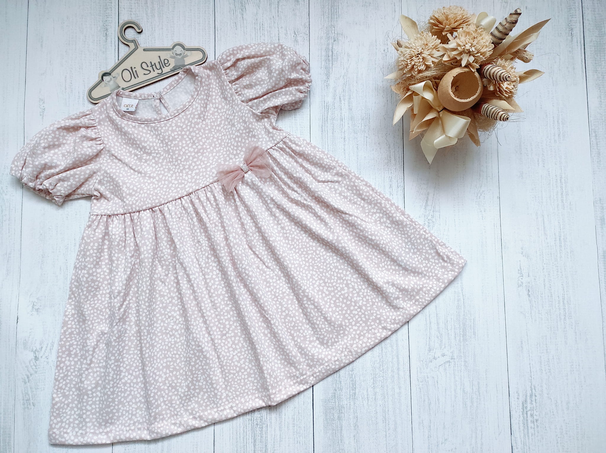 - kolor brudny róż w białe kropki